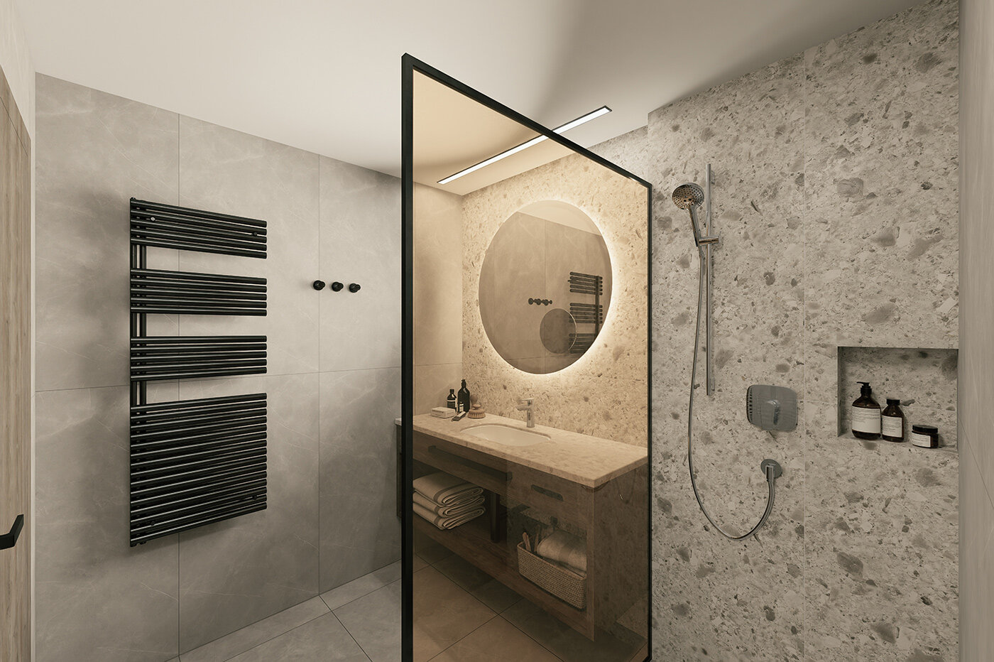 - Bad mit moderner Dusche, WC, Föhn, Kosmetikspiegel
